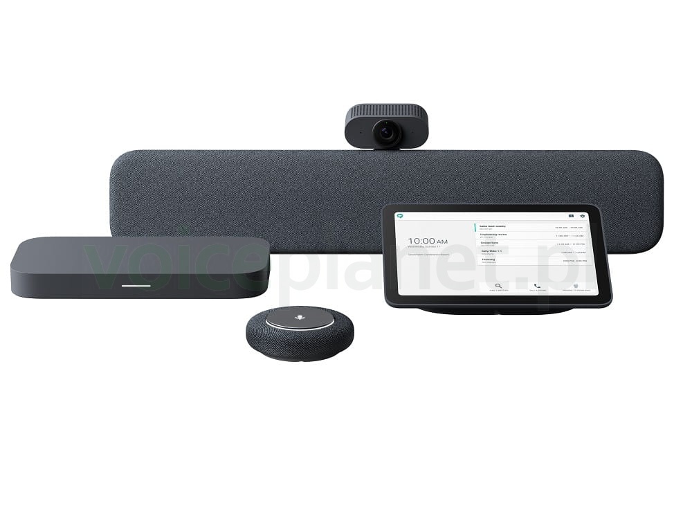 Zestaw Google Meet drugiej generacji: PC, kamera, panel dotykowy, audiobar, zewnętrzny mikrofon