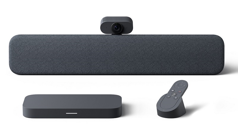 Zestaw Google Meet drugiej generacji: PC, kamera, audiobar oraz pilot do sterowania