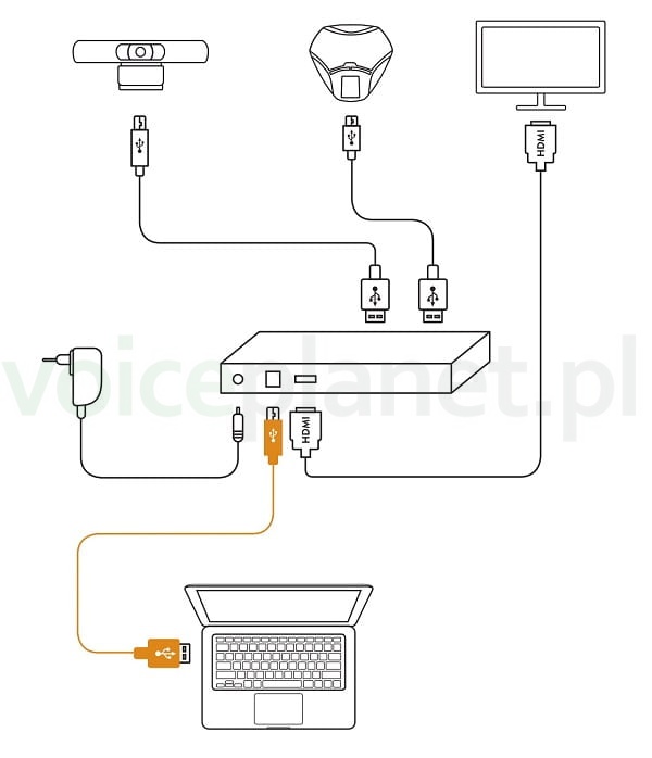 Tylko jeden przewód dla połączenia całego zestawu z komputerem