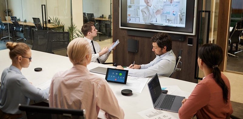 ThinkSmart Cam, nasza pierwsza kamera oparta na sztucznej inteligencji, śledzi rozmowy i ułatwia interakcje, zapewniając większą produktywność spotkań. To kompaktowe i lekkie urządzenie można łatwo zmieścić na stole lub zamontować na ścianie. Posiada certyfikat dla Zoom Rooms i oferuje wysoki kontrast, żywe kolory oraz jaśniejszy obraz w słabo oświetlonych pomieszczeniach. Co więcej, szerokie pole widzenia, wysoka rozdzielczość i wysoka częstotliwość odświeżania obrazu eliminują opóźnienia i zniekształcenia.