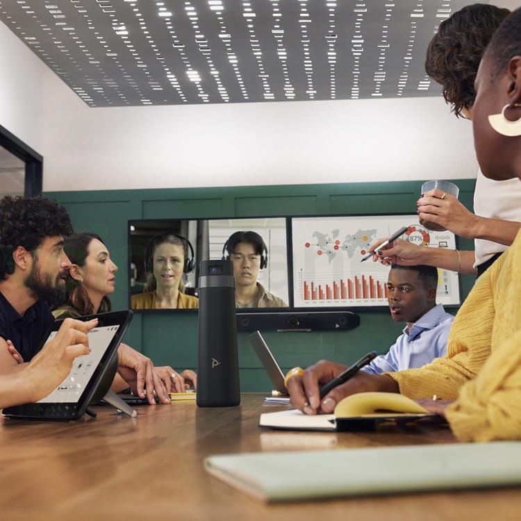 Poly Studio E360 to odpowiedź na aktualne wyzwania pojawiające w pomieszczeniach pracy wspólnej, związane z hybrydowym charakterem pracy. Sale konferencyjne wyposażone w pojedyncze kamery umiejscowione na przodzie sali są w stanie kadrować grupę uczestników, czy prezentować ich w osobnych kafelkach jako widok złożonej galerii. W sytuacji, gdy uczestnicy spotkania zwracają się do siebie, aby porozmawiać, czy złapać kontakt wzrokowy, kamera nie jest w stanie utrzymać frontalnej perspektywy, przez co zdalni uczestnicy nie mogą już wyraźnie zobaczyć dyskusji przy stole, poczuć się jej częścią, ani wychwycić komunikatów niewerbalnych.