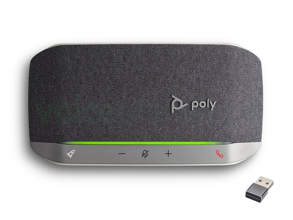Poly Sync 20+ to najmniejszy z nowej rodziny urządzeń Sync, przeznaczony do pracy personalnej i bardzo małych grup roboczych. Urządzenie może służyć zarówno do rozmów, jak i słuchania muzyki. Wbudowana bateria pozwala na 20 godzinną pracę, swobodę przenoszenia urządzenia w dowolne miejsce, a nawet podładowanie smartfona. W zestawie znajduje się adapter USB/BT, który pozwala na bezprzewodową łączność przez port USB.