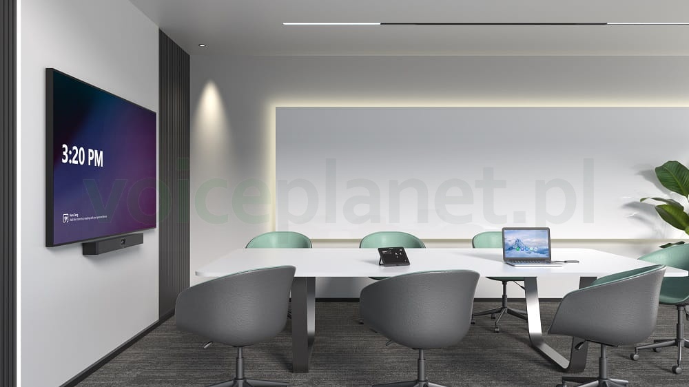 To wszechstronne urządzenie wyposażone jest w dwa obiektywy 48MP z przekątną widzenia 120°, obsługuje funkcje IntelliFocus, Multi-stream Intelliframe*, Video Fence oraz inne nowoczesne funkcje AI zaszyte w aplikacji Teams, co zapewnia wszechstronne i immersyjne doświadczenie w sali spotkań.
