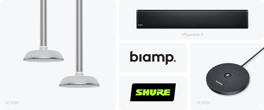 Zestaw Yealink MVC940 w standardzie nie zawiera urządzeń do przesyłania dźwięku. Producent nie narzuca gotowego bundle'a, a daje możliwość skomponowania zestawu skrojonego pod potrzeby danego pomieszczenia. Dostępne są mikrofony stołowe w wersji z przewodem lub bez, a także mikrofony sufitowe. W zależności od specyfiki sali, wykorzystać można oferowane przez Yealink soundbary MSpeaker II lub zintegrować całość z system audio trzeciego producenta, tworząc w ten sposób kompletne rozwiązanie do przekazywanie zarówno dźwięku, jak i obrazu.