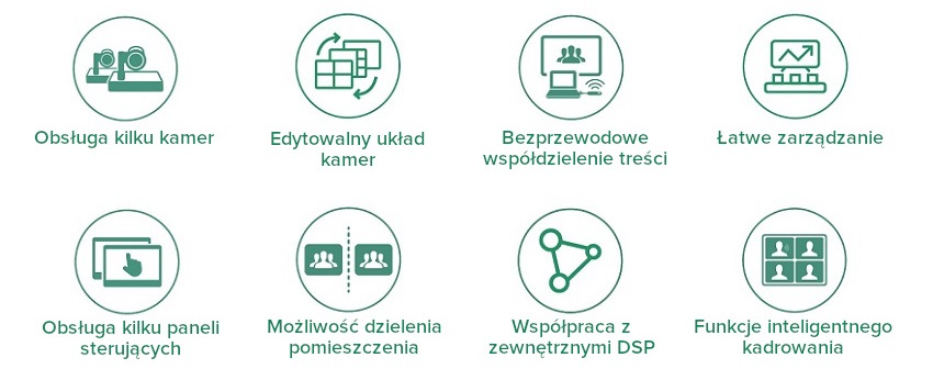 Zestaw MVC940 umożliwia uchwycenie uczestników z różnych kątów i wybór indywidualnych trybów dla każdej kamery za pomocą urządzenia AVHub. Zdalni uczestnicy mogą cieszyć się wygodnym i dopasowaną transmisją z kilku aktywnych kamer, co pozwala realizować złożone scenariuszy dla bardziej wymagających pomieszczeń.