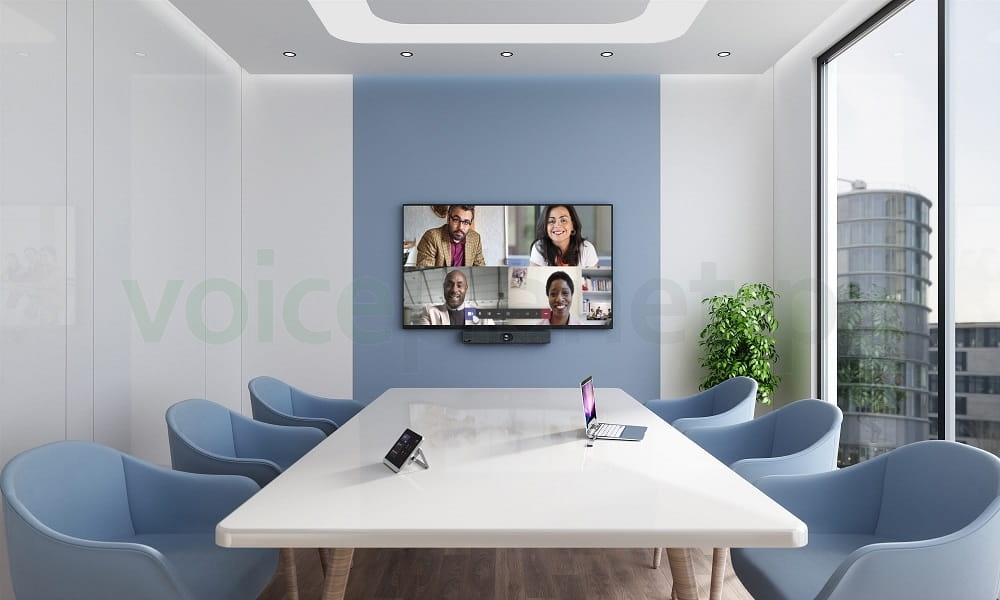 Yealink MeetingBar A20 to urządzenie o budowie "wszystko w jednym", przeznaczone do pracy w niewielkich pomieszczeniach, umożliwiające natywną obsługę aplikacji Microsoft Teams lub Zoom Rooms.