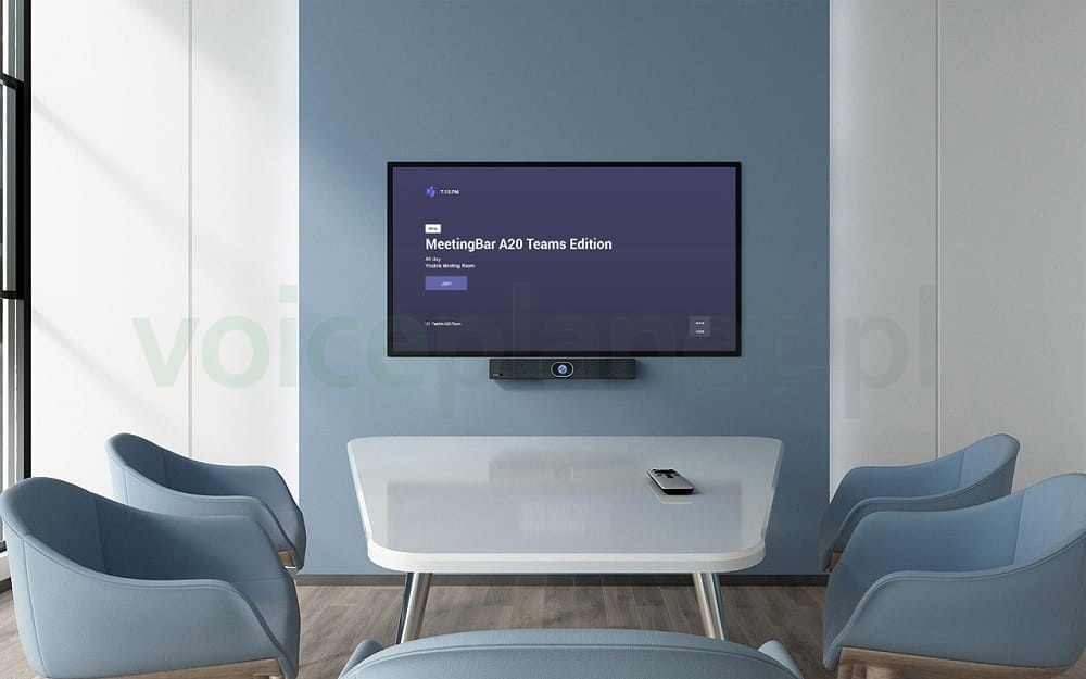 Yealink MeetingBar A20 to urządzenie o budowie "wszystko w jednym", przeznaczone do pracy w niewielkich pomieszczeniach, umożliwiające natywną obsługę aplikacji Microsoft Teams lub Zoom Rooms.