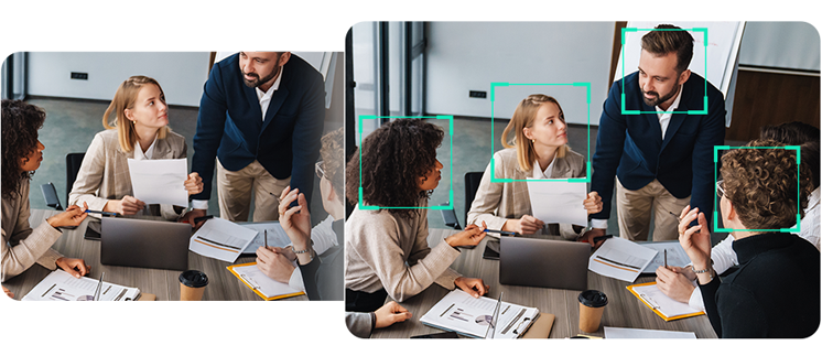 Zastosowany w urządzeniu układ dwóch kamer oraz technologie AI, realizują funkcje automatycznego kadrowania grupy oraz mówcy. Odpowiedni kadr i stopień powiększenia obrazu może ustawiać się automatycznie, bez ingerencji użytkownika. Kamera samodzielnie dobiera optymalny kadr, w oparciu o ilość zebranych osób, a także ich rozmieszczenie w pomieszczeniu.