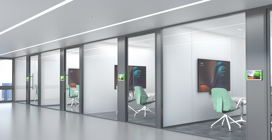 - 10.1 calowy panel z funkcją dotyku dla łatwego rezerwowania sali i realizowania funkcji check-in/check-out