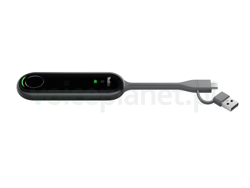 Yealink WPP30 to bezprzewodowy adapter, podłączany do komputera przez gniazdo USB-C/USB-A, służący do przesyłania treści w rozwiązanych z serii MeetingBar, MVC, ZVC, a także do współpracy z Yealink RoomCast. Urządzenie nie wymaga instalowania specjalnego oprogramowania, sterowników, ani aplikacji na komputerze - działa w trybie Plug&Play.