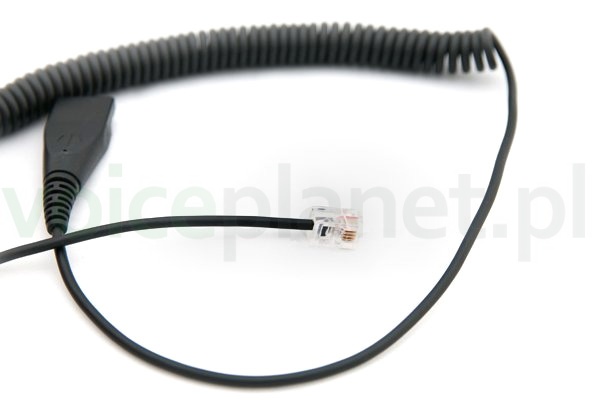 Kabel spiralny umożliwiający podłączenie słuchawek nagłownych Axtel zakończonych szybkozłączką do telefonów stacjonarnych z gniazdem RJ9 (4P4C).