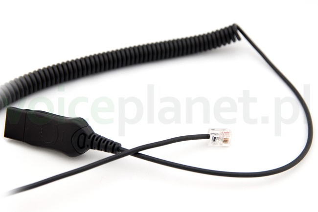 Kabel spiralny umożliwiający podłączenie słuchawek nagłownych Axtel zakończonych szybkozłączką do telefonów stacjonarnych Avaya z gniazdem RJ9.
