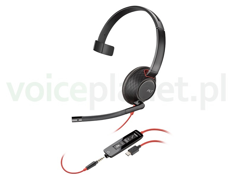 Plantronics Blackwire 5210 USB-C - Przewodowy zestaw słuchawkowy z wtykiem USB typu C (micro) oraz jack 3.5mm