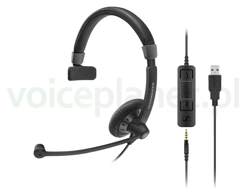 Sennheiser SC45 USB CTRL - Słuchawka nagłowna na jedno ucho z wtykiem jack 3.5mm i adapterem USB z kontrolą połączeń